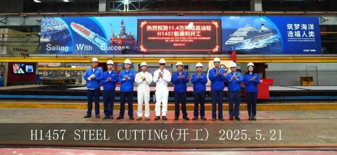 5月21日,外高橋造船為土耳其YASA公司建造的11.4萬噸阿芙拉型油船H1457船開工儀式順利舉行。目前,各項生產(chǎn)準(zhǔn)備工作均在按計劃落實。