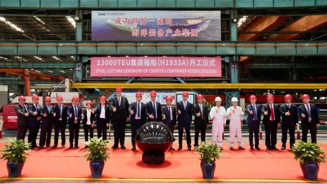 △太平船務(wù)項(xiàng)目13000TEU雙燃料集裝箱船H1933A船開(kāi)工